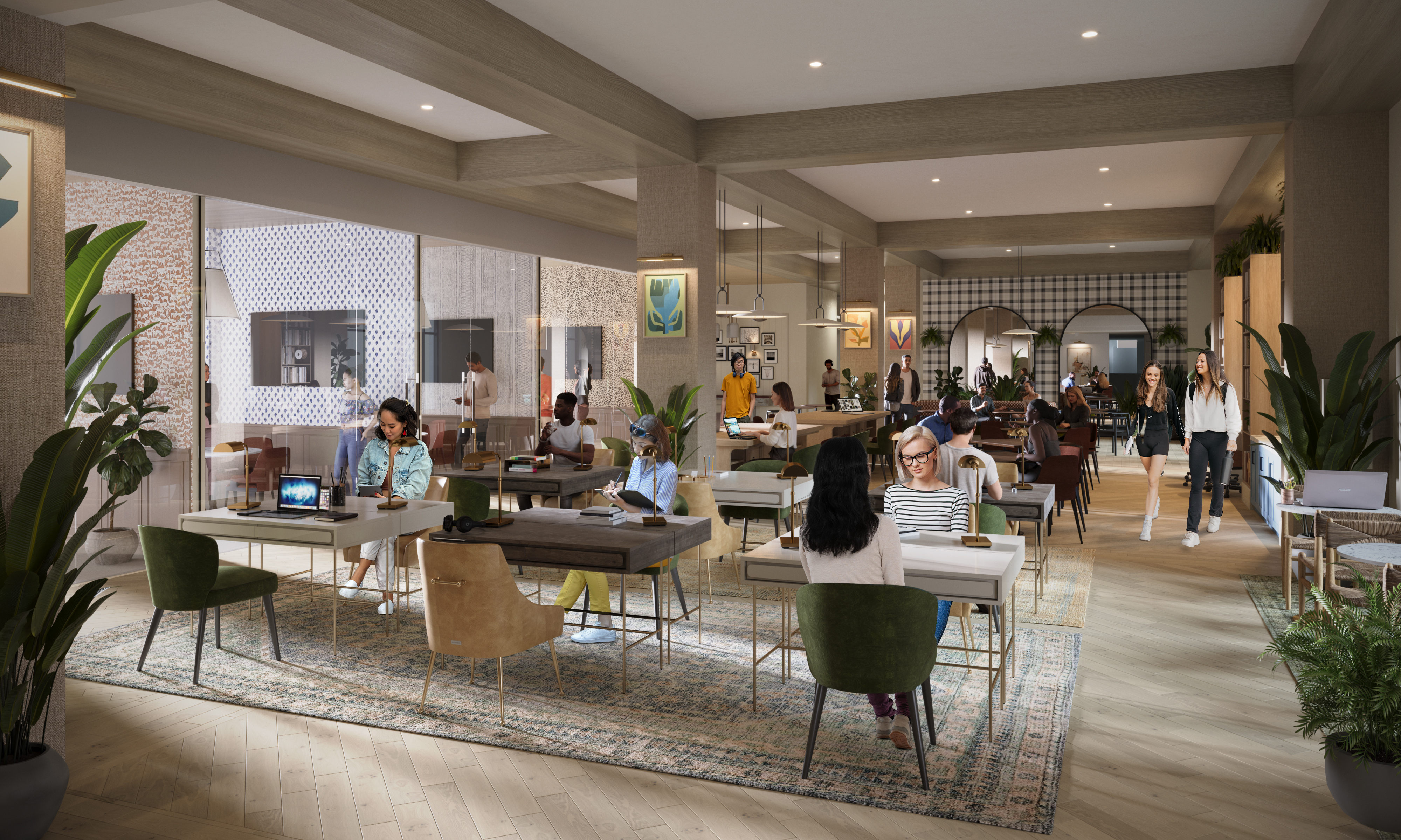 - Representative rendering of the courtyard pool deck at Rambler.